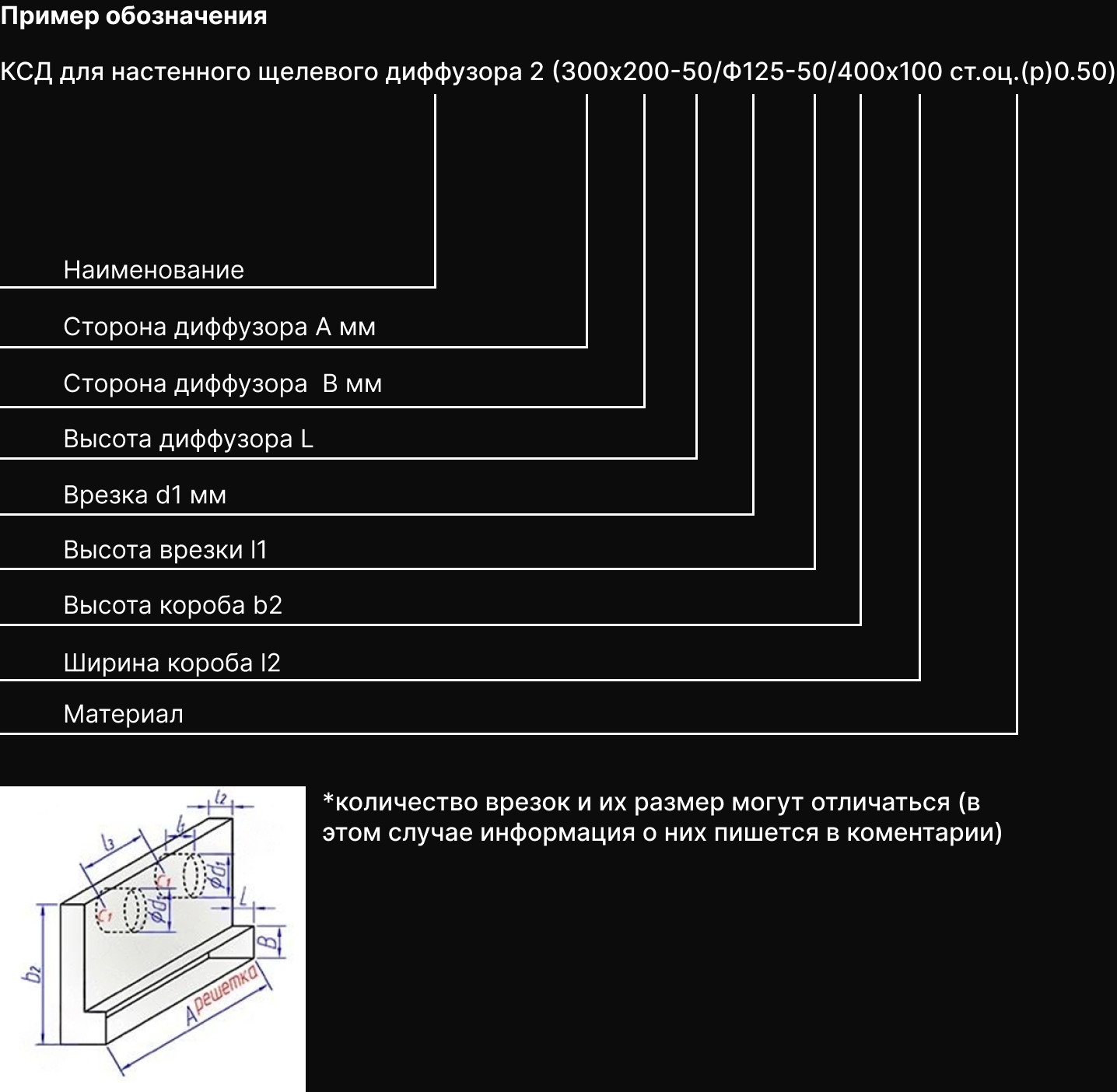 | КСД для настенного щелевого диффузора 2 | 300×200-50/Ф125-50/400×100 | ст. оц.(р)0.50 | 0,439 | 1,72 | |