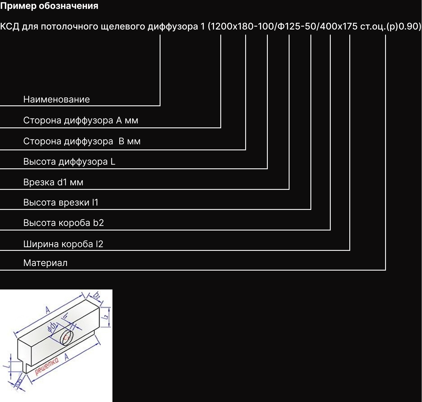 | КСД для потолочного щелевого диффузора 2 | 1200×180-100/Ф125-50/160×175 | ст. оц.(р)0.90 | 0,976 | 6,90 |