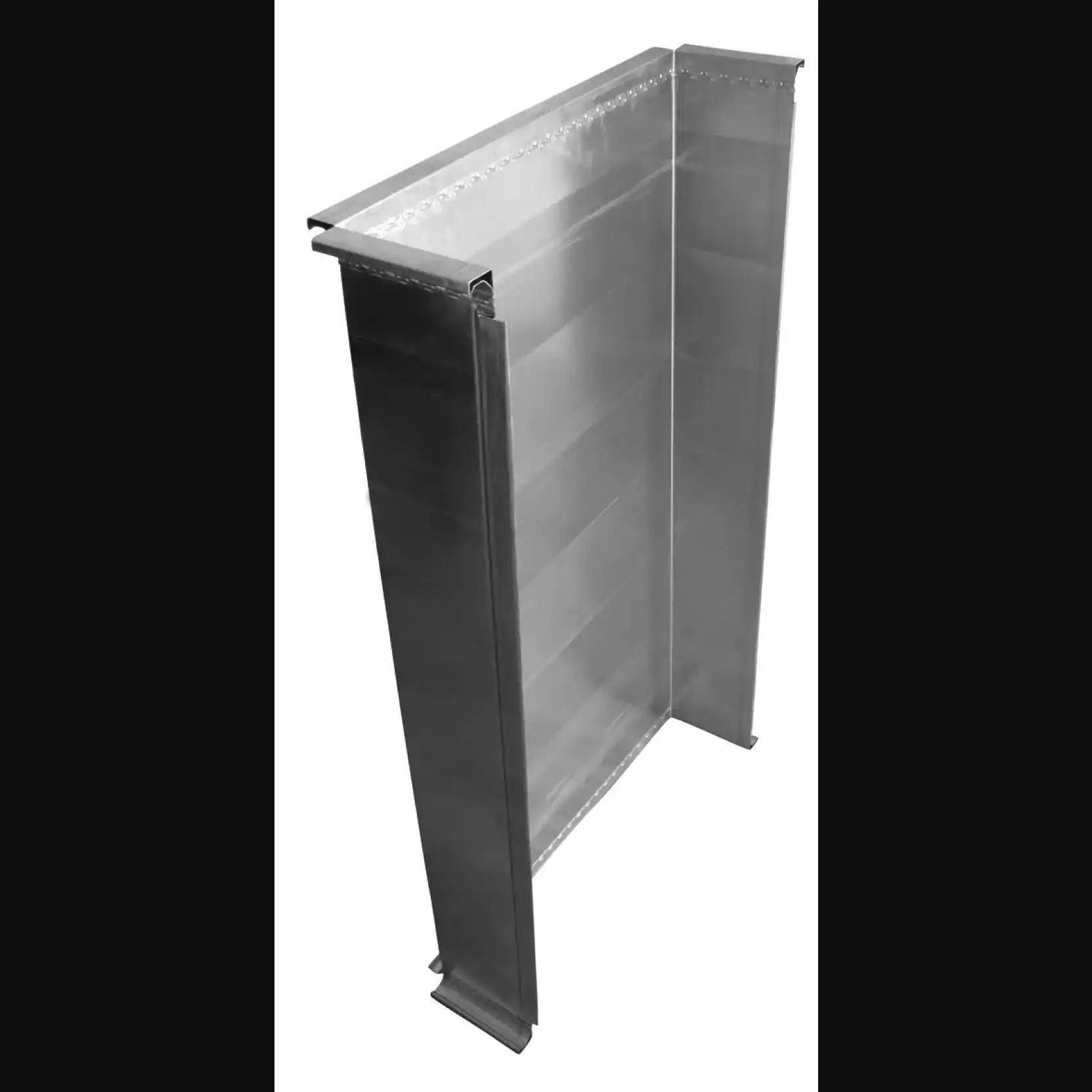 | Сечение-длина мм | Материал | Соединение | Площадь м2/шт. с замком и подгибом на фланец | Площадь м2/шт. с замком | Вес кг/шт с фланцем и замком |