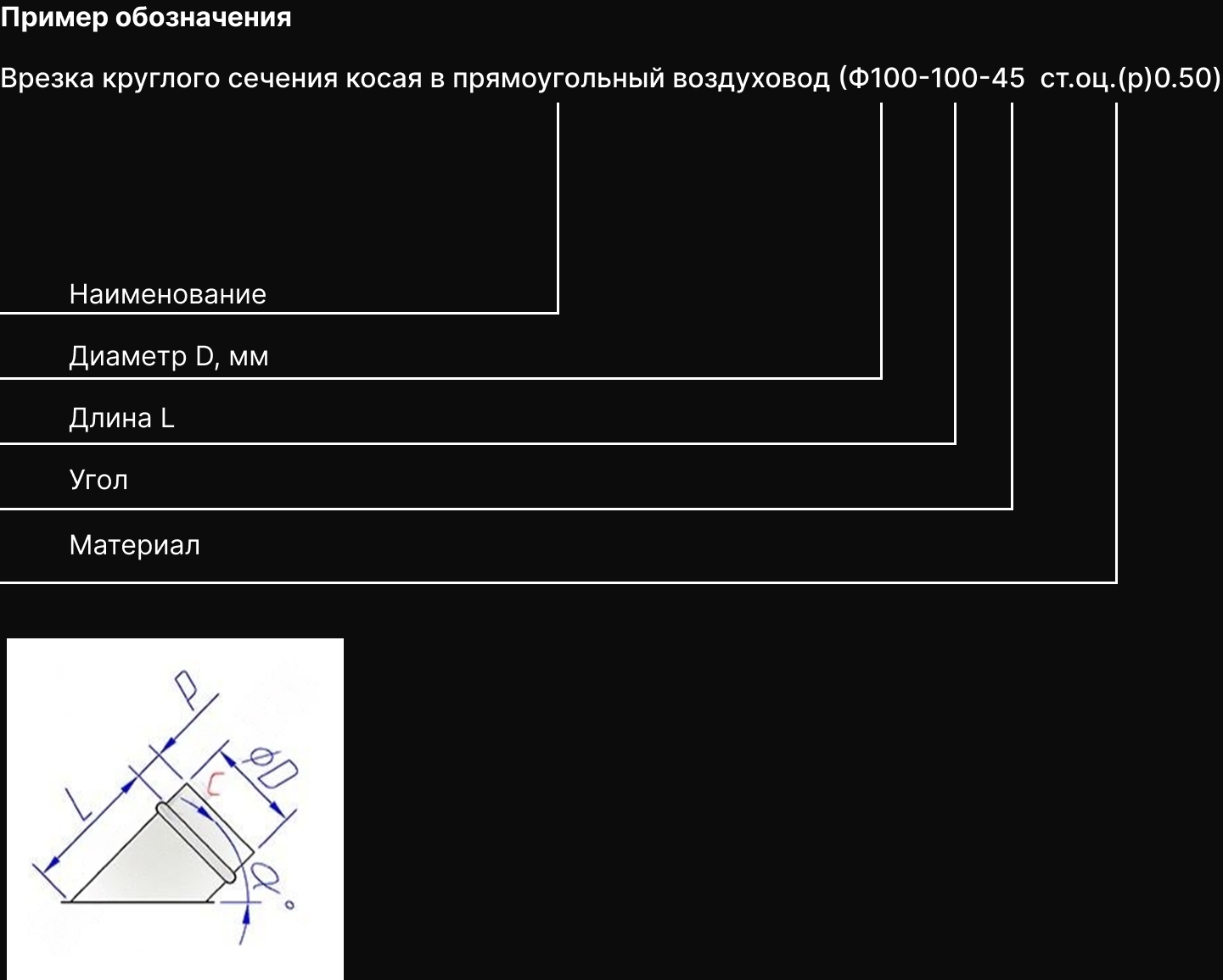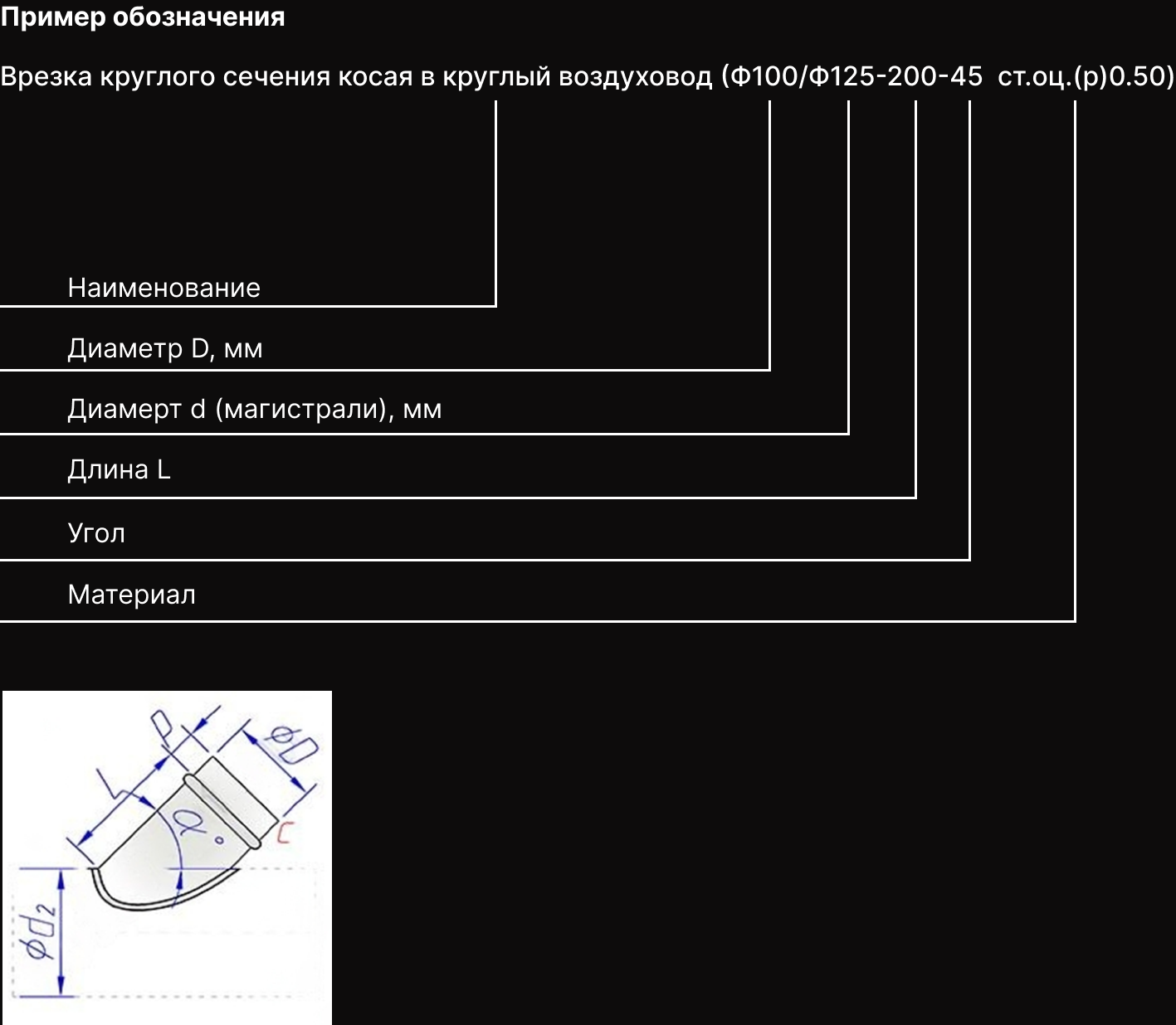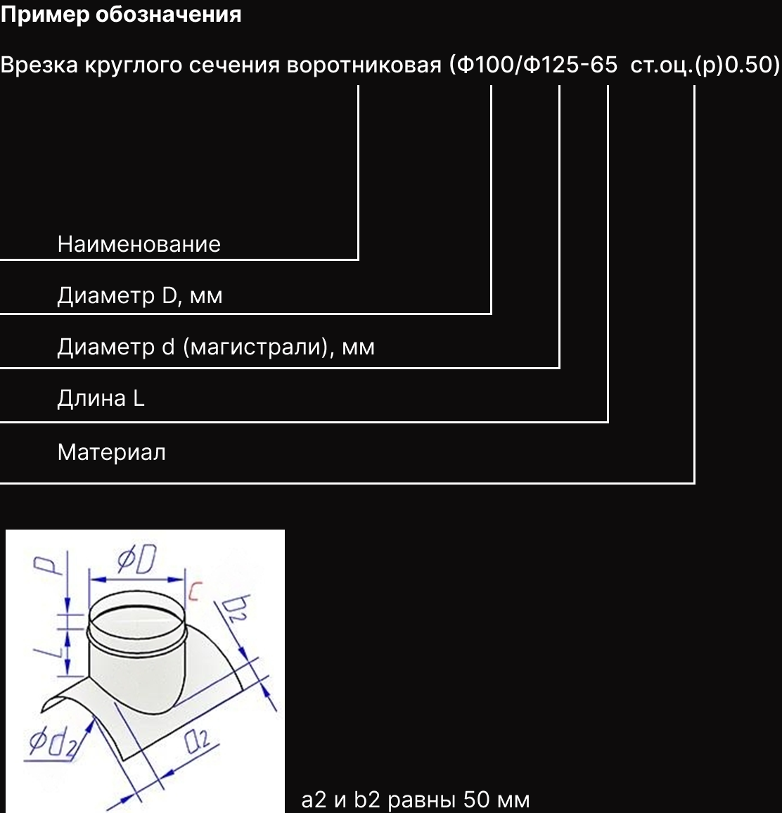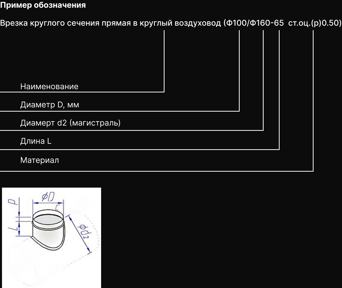 Врезка круглого сечения прямая в круглый воздуховод