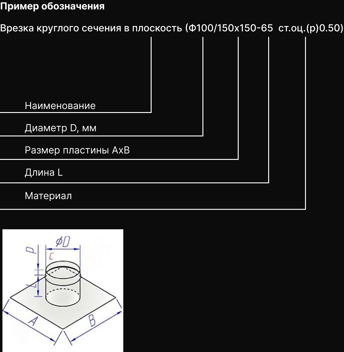 Врезка круглого сечения прямая в прямоугольный воздуховод