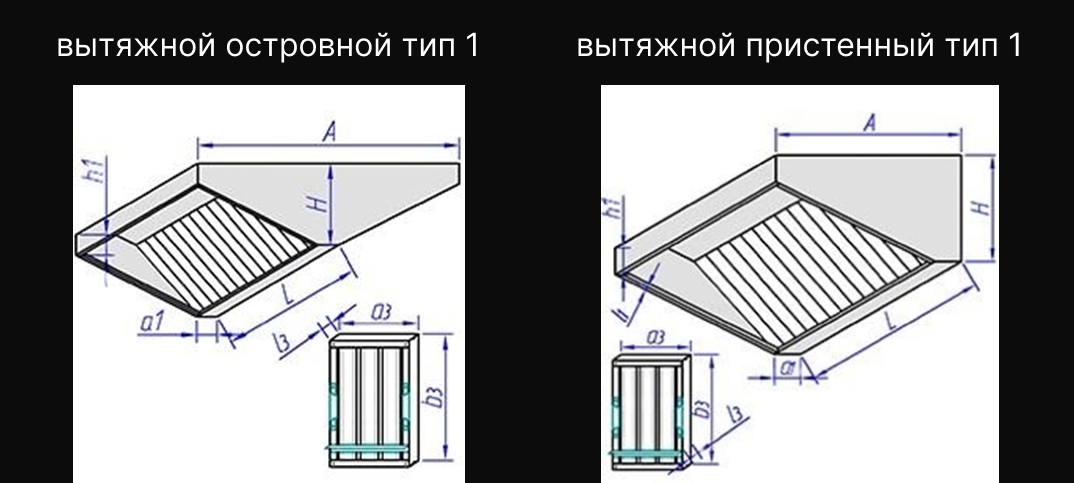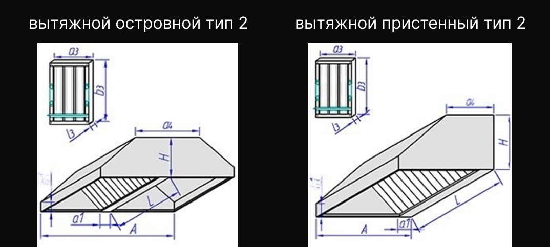Возможно исполнение кухонных зонтов из нержавеющей стали (вытяжных и приточно вытяжных)