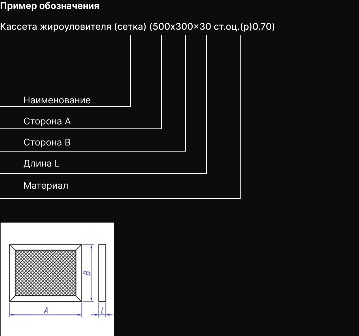 | Кассета жироуловителя (сетка) | 500x300x30 | ст.оц.(р)0.70 | 0,05 | |