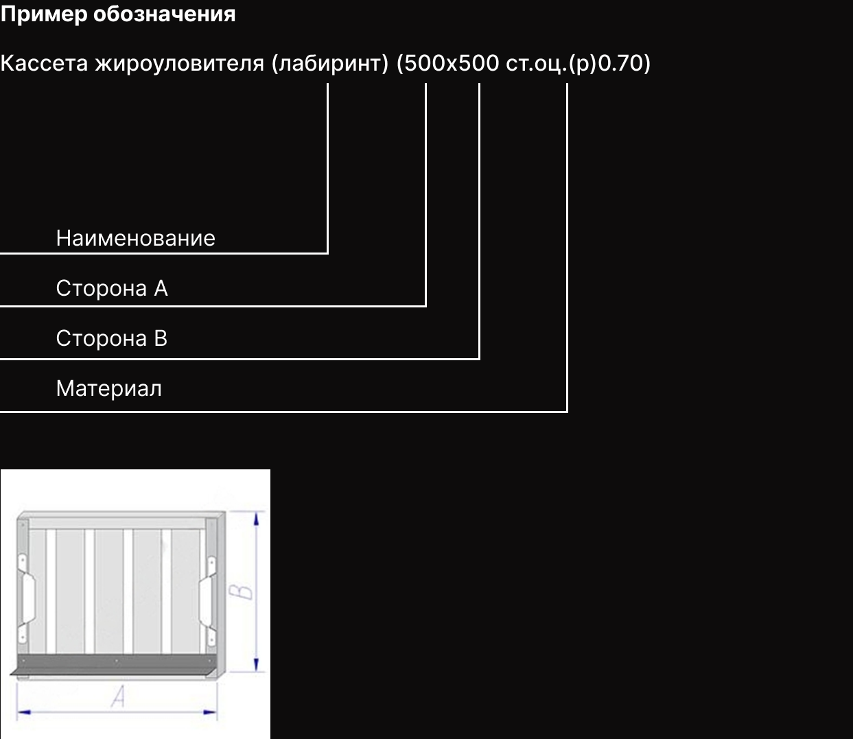 | Кассета жироуловителя (лабиринт) | 500×500 | ст.оц.(р)0.70 | 0,57 |